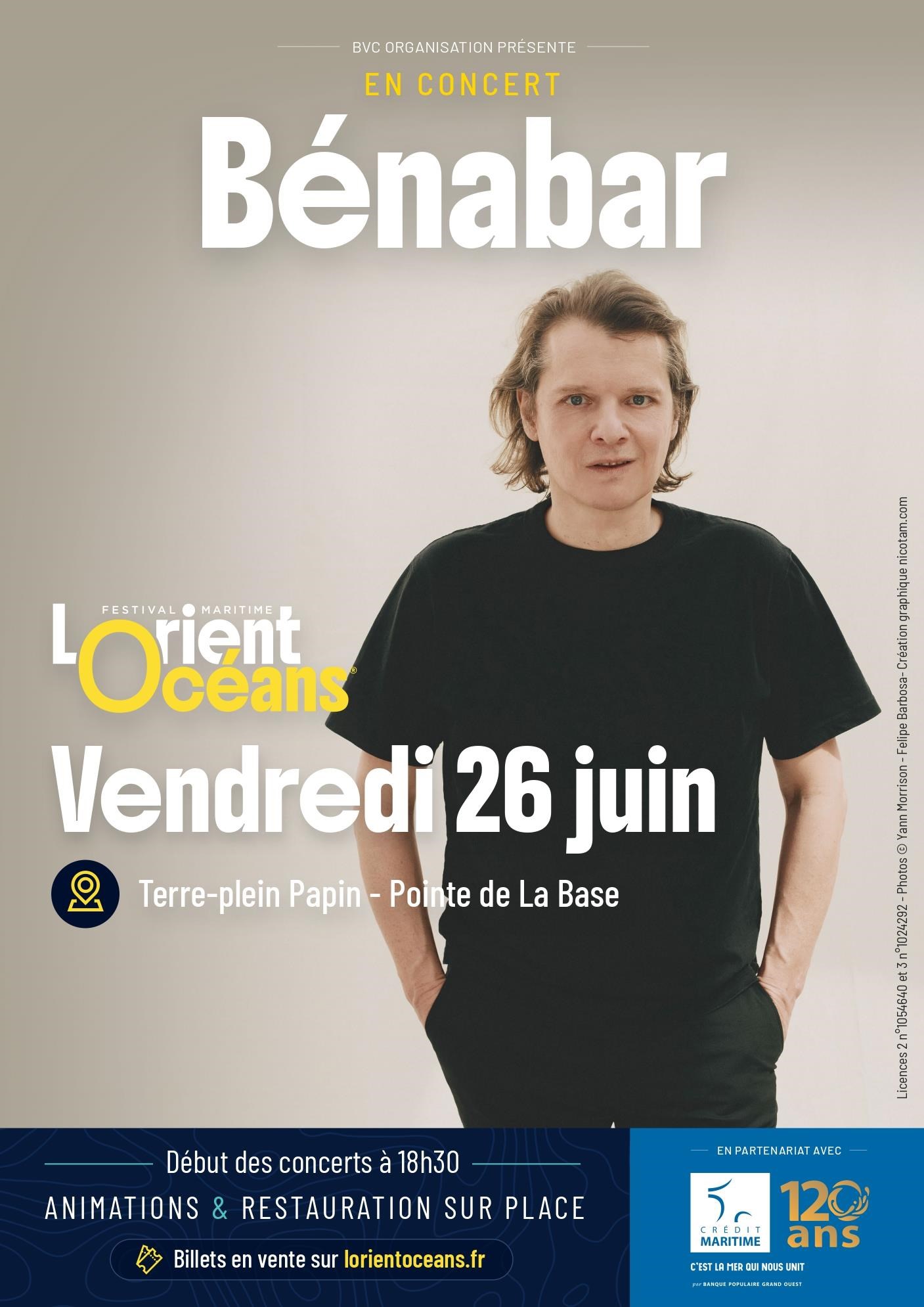 Chanson. Vendredi 26 juin à 18 h 30, Terre Plein Papin, Port de pêche et la base, Lorient. Tarif 15€. Contact : 02 97 83 49 43, prod3@bvcorganisation.com, lorientoceans.fr/soiree-concert/.